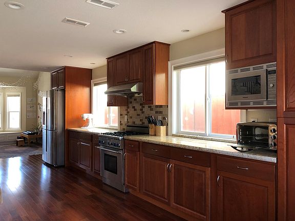 Completely and beautifully remodeled open floor plan. Remodeled wide galley kitchen. All bathrooms completely remodeled and modernized. Solar Panels - electricity bill close to zero (even during the summer with air conditioning on) ADT security (included in rent). Vaulted ceilings. Hardwood floors in common areas. Partially furnished downstairs. Outdoor living/entertainment yards (both front and back). Low maintenance yards. Walking distance to the Iron Horse Trail, all schools, shopping, library, central park, and city center. All award-winning schools. Pleasant neighbors and neighborhood. Owner pays for ADT security. Tenant pays for all utilities: electricity, gas, water, and garbage. No pets. No smoking. If tenant is willing to do very little quarterly yard maintenance, will offer a discount.