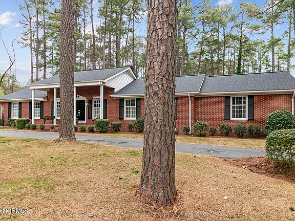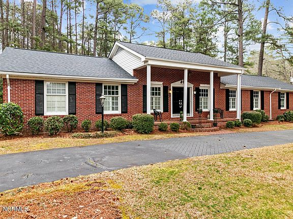 All brick, single story gem, located in one of Southern Pines' most desirable neighborhoods! ALSO, a mere 1 mile from the E. Connecticut Ave gate onto Ft Bragg/Liberty! If you would like an immaculate home with an awesome, large, in ground pool, ideal for your family & for entertaining, then look no further! The owners have done a wonderful job with updates & renovations over the past decade: Pool Liner added; New Roof (2023); New Heating/Cooling System (2021); Bathrooms Renovated. '595' was originally laid out magnificently with its Spacious Formal Dining Room, with its Plantation Shudders, just off the renovated kitchen! The peaceful Carolina Room, which overlooks the back yard & Pool/Patio area, was added by the owners a couple of decades ago. Beautiful hardwood floors throughout! Come see a marvelous place to call home!