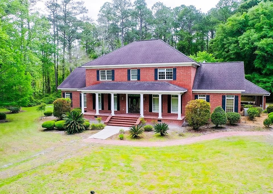 Here's a wonderful 2-story brick home on 6.57+/- acres. Home sits back privately, and yet close to town. Home boasts tons of space! Master suite and bath are located downstairs with study adjoining. Located off of master suite is a private screened porch area. Family room with hardwood and gas fireplace. Kitchen with lots of cabinets and all appliances. Breakfast area. Formal Dining room. Downstairs are 2 half baths, one off of family room and one off of kitchen area. Nice laundry room with cabinets and another flex room beyond that. Upstairs leads to 4 more bedrooms and 3 baths. Attached covered carport for parking with storage. Open back porch area. Nice screened inground pool area. This home has too many features to list, such as lots of crown molding, walk in closets, hardwood floors, nice landscaping, landscape lighting etc. In this market this home is being offered at a great price as well so call today for your tour!