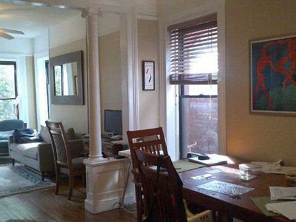 Beautiful 4 Family brick brownstone, 950 sqft 3rd flr. large unit to accommodate full dining room and living room space and split bedrooms for easy roommate scenario. Walkin closet in larger bedroom. Hardwood flrs throughout, ample light with windows on the South, West, and Eastern side. Washer/ Dryer in basement ( coined operated). Heat/Water included. Additional storage in basement. NO brokers FEE at Advertised Rental Price ONLY!