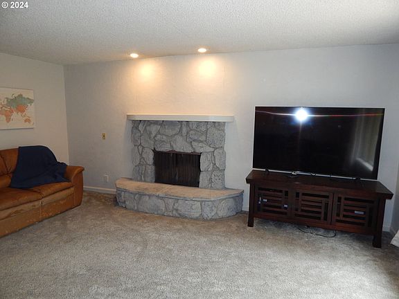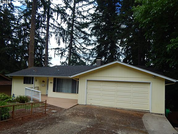 Looking for a solid South Eugene home? This is it! Large living area with big windows, wood burning fireplace and opens to dining area to kitchen - kitchen features super cute breakfast nook, pantry, beautiful views and newer appliances. Primary has walk in closet, slider to upper deck and on main level. Lower level features, laundry area, large family room, second fireplace, slider to lower deck, two bedrooms + office (bedroom) and full bath... Wonderful separation of space! Bring all your HGTV ideas!!!