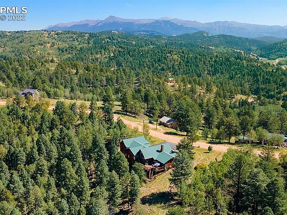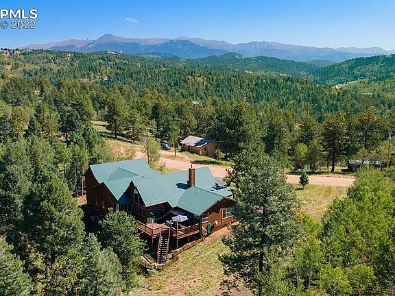 This gorgeous ranch style cedar home is perfectly situated on over 2 acres of beautifully treed land to capture picturesque views from every window, including Pikes Peak and the Continental Divide. This well cared for home features an open layout, full-length great room, large bedrooms, gas fireplaces, solid maple flooring, granite counters and an antique mantel with marble hearth in the living room. The private, main level master suite has a large walk-in closet, vaulted ceilings and attached 5-piece bathroom that walks out to the west-facing private back deck. You'll relish in the captivating views that can be seen from the oversized master bathroom corner tub supplied by a dedicated Rinnai on-demand water heater. The large, gourmet kitchen has plenty of cabinet and counter space, a walk-in pantry, a large island with breakfast bar and also walks out to the back deck. Finishing off the main level is a 2nd bedroom, half bath, and a convenient mud room/laundry space just inside the door from the garage. In the fully finished walk out basement you will find a large family room with free standing gas fireplace, another spacious bedroom, a full bath and ample storage. The back patio, dog run and yard are easily accessed from the basement. Additional amenities include an oversized, insulated and dry walled 2-car garage with 8ft doors to easily accommodate a full size truck. Attached to the 2-car garage is a heated workshop with lights, an oversized access door, 220v service, work benches and windows with views to the west. From there, access the massive 20'X40' RV garage with a 14' automatic door! This spectacular home is located in the popular community of Cripple Creek Mountain Estates which provides a clubhouse, heated pool, tennis and basketball courts, a driving range, a disc golf course and new equipment in the fitness room! Just minutes from Cripple Creek for gaming, dining, shopping or antiquing. The well cared for home is truly a must see!
