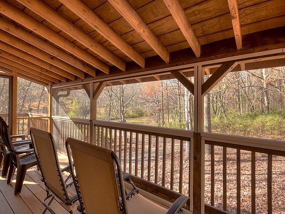 Charming 2 bedroom, 1.5 bathroom cabin located just minutes from Merciers Orchard and downtown Blue Ridge! This move in ready cabin features a cozy living room, eat in kitchen with updated appliances and a large master bedroom with adjacent bath. Enjoy your morning coffee on the screened in front porch or the sounds of the almost 300 ft of babbling branch located on this gorgeous property. Very level usable land perfect for your family or pets! RV hook up in place.