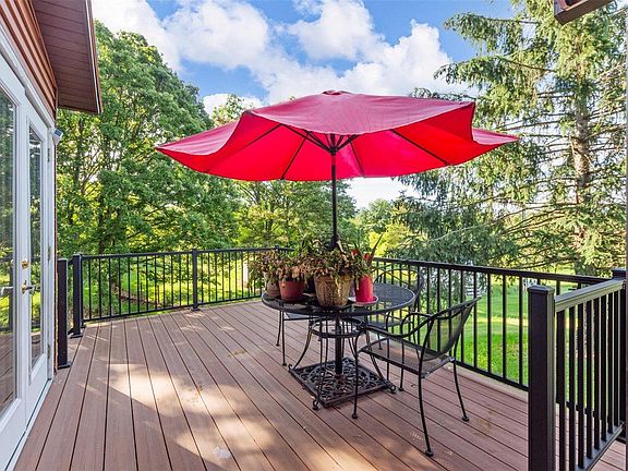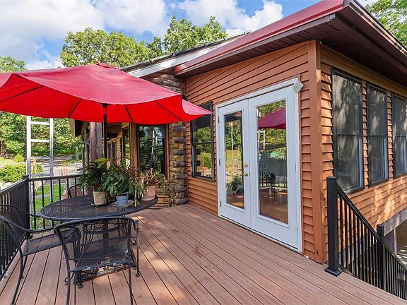 There are 3 total sleeping areas! Plenty of room. ONE-OF-A-KIND home sits on 5.7 acres. A log overlay ranch home! Country living at its finest. As you drive up to your new home, you are met with garden beds, gazebo, mature trees/bushes & a good sized fenced area for pets. Quaint front porch invites you right in! An open floor plan with so many windows you feel you are still outside! Cozy up to the freestanding fireplace in the winter & just look out across your land. HUGE kitchen is where the smiles happen. Center island, skylights, eat in breakfast room, gas stove and enough counterspace to make Thanksgiving Dinner! The primary suite is on main floor which allows you to walk out onto the glass enclosed sun porch to have your morning coffee & take it the view! Keep walking out onto the large deck that has the most breathtaking views! You can see your stocked pond/pole barn/greenhouses/sheds from here. Finished LL has 2 additional sleeping areas, a full bath & rec area. STORAGE GALORE! Additional Rooms: Sun Room