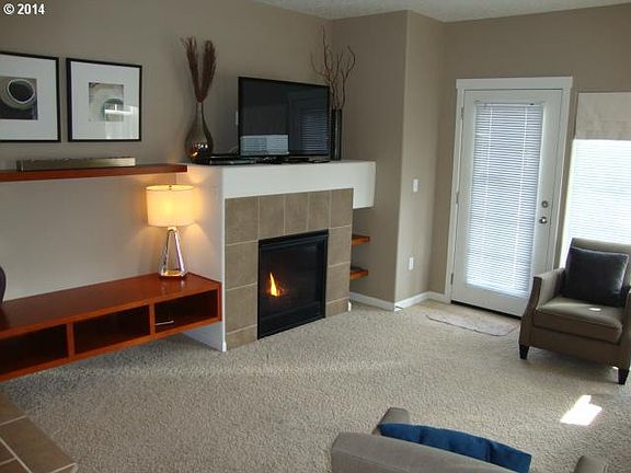 Immaculate Timberland end unit townhouse style condo that was the model home. Two bedrooms + den and 2 full baths upstairs. The main level has an open floor plan with an island kitchen, stainless appliances, half bath, large living room/fire place and a covered front porch. Tandem two car garage + driveway parking. All decorating upgrades. Trails, fields, market & play structures. Turn Key!
