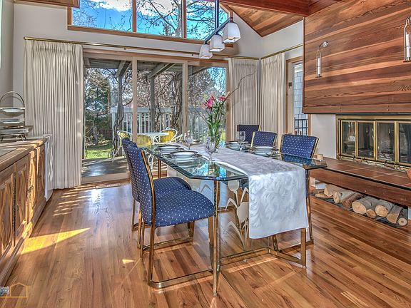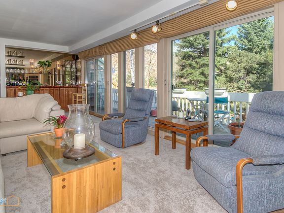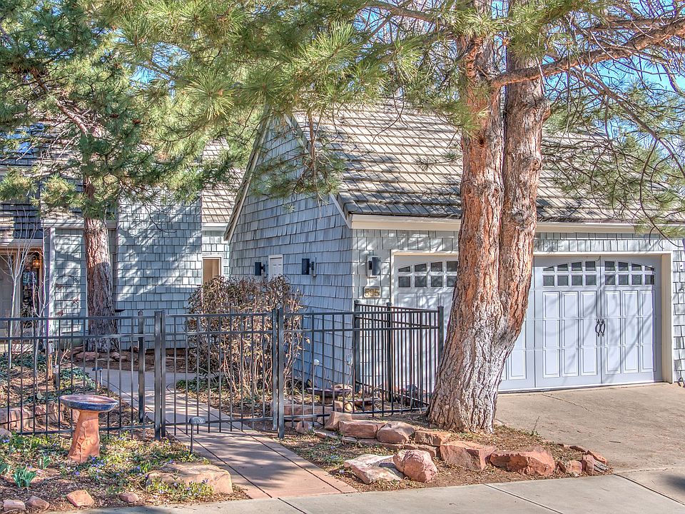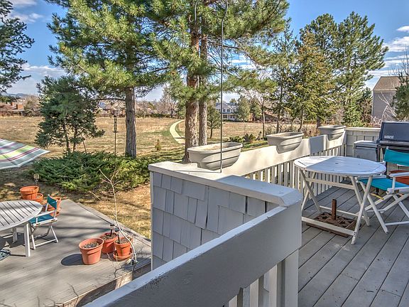 Prime Wonderland Hill location borders open space with foothills views & trail access. Dramatic vaulted & beamed wood ceilings soar over dining room w/ hardwood floors, fireplace & doors to covered patio. Bright & light kitchen offers wood floors, tile counters, glass-faced cabinets & breakfast bar. Private second floor master has office & bath w/ large jetted tub. Nicely landscaped front courtyard & multi-level rear deck surrounded by mature pine trees. HOA pool & tennis court across street.
