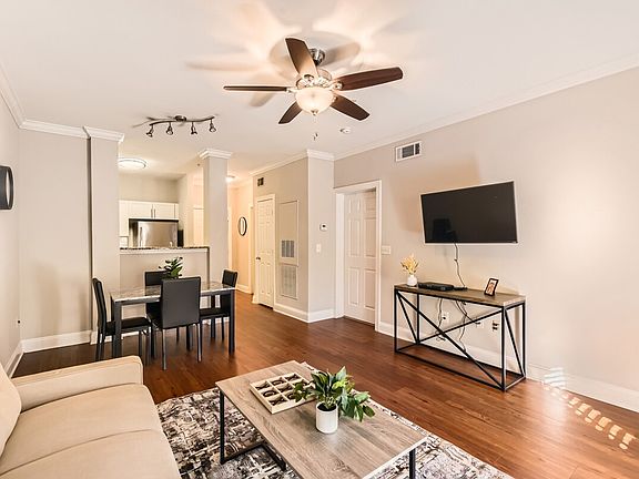 Experience the best of city living in this modern 1-bedroom, 1-bathroom apartment at Crest at Midtown Apartments, located in the heart of Midtown Atlanta. With stylish layouts, high ceilings, crown moldings, and hardwood-style floors, this apartment offers a gourmet kitchen with a breakfast bar, stainless-steel appliances, and a washer/dryer set for added convenience. Enjoy the vibrant community with amenities like a rooftop, fitness center, tennis court, bocce ball, grilling area, and a pet-friendly bark park, all within walking distance to Publix, Central Park, and Fox Theatre. This fully furnished apartment is designed for comfort and features a balcony. The open-concept living space is bright and inviting, with stylish furnishings and a cozy atmosphere. The modern kitchen is equipped with all essential appliances, making meal preparation a breeze. The bedroom offers a tranquil retreat with ample storage, while the bathroom is well-appointed for privacy and relaxation. With all utilities included, this apartment is perfect for those seeking a hassle-free living experience. A one-time non-refundable pet deposit of $250 is required for pets, with a limit of 2 pets per reservation and a weight limit of 50 lbs. No aggressive breeds are allowed, and the right to decline pets that may not be a good fit for the community is reserved. Part of Atlanta's historic Old Fourth Ward, Central Park has become a neighborhood and cultural center in its own right. The park and its surrounding area sit just outside of Midtown Atlanta, just minutes from the city center and all the popular attractions. The park itself hosts the annual Shaky Knees and Shaky Beats music festivals, both of which draw in thousands of local and out-of-state attendees. Residents enjoy access to a pocket of greenery among Atlanta's skyscrapers. The main occupant must be listed on the reservation, and it must reflect the accurate number of guests and pets. Mailbox access is available upon request and is not guaranteed, with a refundable key deposit of $35 required. Respect shared spaces and amenities, keep noise levels low during late hours, and dispose of garbage and recycling properly in designated areas to maintain cleanliness.