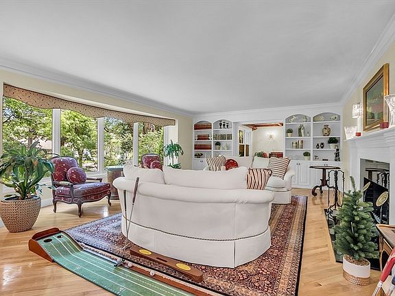Rarely does a home of this caliber become available— Experience unparalleled elegance and modern comfort in this meticulously maintained mid-century modern ranch on Salisbury Street. on a beautifully manicured lot! This residence boasts a professional custom interior redesign and restoration, featuring top-of-the-line finishes throughout. The chef's kitchen is a masterpiece, showcasing exquisite millwork, surfaces, and premium appliances. Sun-drenched living and dining rooms, each with a fireplace, offer elegant built-ins. The dining room's stunning coffered ceiling adds a touch of sophistication. The vaulted family room provides a seamless flow to the paver patio, perfect for indoor-outdoor entertaining.The primary suite is a luxurious retreat with a walk-in closet/spa-like bath featuring a walk-in shower and jet tub. Two generously sized bedrooms and a 2nd bath complete the 1st floor. The finished lower level offers versatility with bonus room/ wet bar/ sauna, exercise/den and bath.