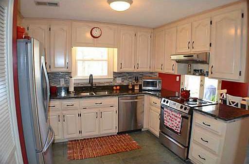 - Kitchen Features: Cabinets White, Counter Top - Stone
