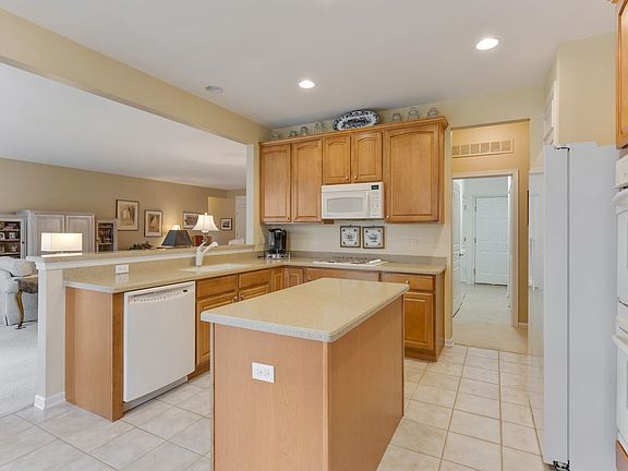 Fabulous Somerset Model in Edgewater by Del Webb! 3 bedrooms plus an Office/den - 2 full baths - Inviting foyer that opens to a Spacious Living and Dining area! Oversized Sliding glass doors bring you out into the covered patio! Maple 42" kitchen cabinetry with island and closet pantry has the space you are looking for! Lots of countertop space - and white appliances - Office/Den with French Doors leading to the foyer - Primary bedroom is off to itself, with a large window and luxury bath offering soaker tub and separate shower- huge walk-in closet - Oversized 2 car garage - Very well maintained, move in ready - Great 55+ Community offer many amenities! Come take a look today!