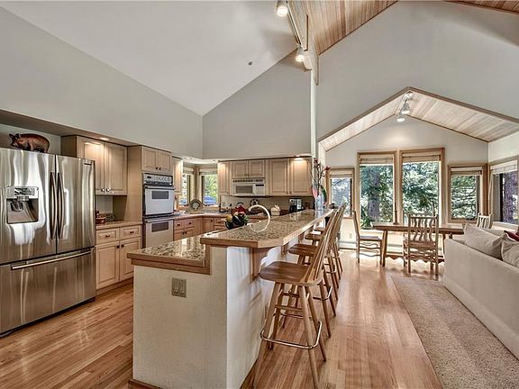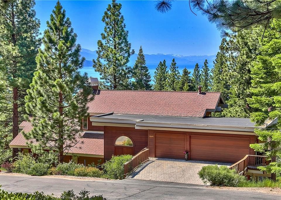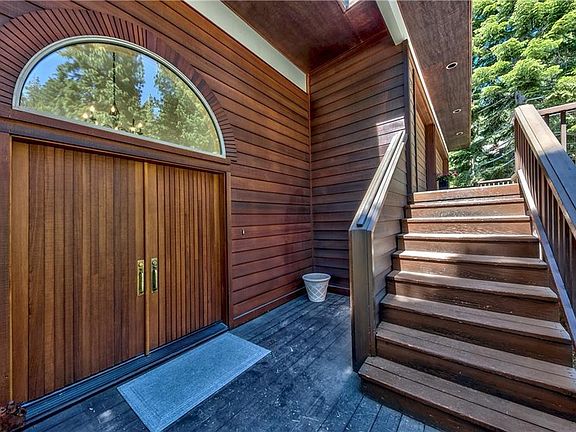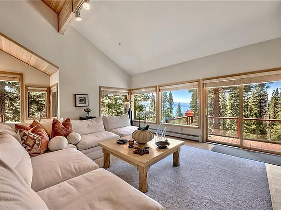 Not your typical Tahoe home, contemporary and light interior. Inviting entry with windows and decks maximizing the stunning lake views. All 3 levels open to decks taking in the sunny orientation. View off the back is very private, facing Lake Tahoe and perched over Forest Service land setting. Residence is set up for comfortable versatile living with functional spaces and open floor plan offering a super home to relax and entertain. A place for morning coffee, a place to play the piano, a few places to enjoy the warmth of the fireplaces. Main floor living for all primary rooms including a den/office. Master floor on upper level with walk in closet, fireplace and deck. Convenience to garage entry. Lower floor has 3 guest rooms, 2 baths and laundry room.