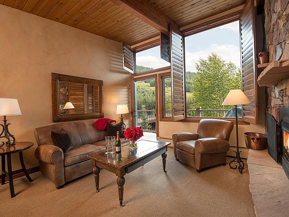 Magnificent Platinum rated third floor unit with vaulted ceilings and ski slope views. Just steps to Vail Village and Ford amphitheater and across the street from Golden Peak Ski School and lift. Enjoy on-site amenities such as pool, Fitz Bar and Restaurant and spa.