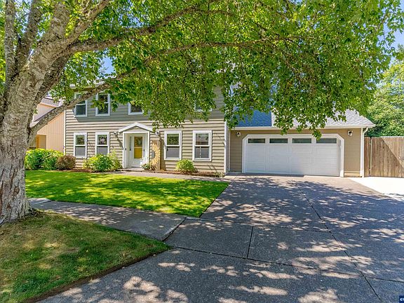 Many updates in the classic S Salem home including vinyl windows, carpeting and underlayment, garbage disposal, quartz countertops, gas range, sink/faucet in hall bath. Very nice floor plan with living and family rooms as well as formal dining. Beautiful back yard with large garden, patio, RV storage, wired for hot tub. Solar panels ($42/month with Tesla). Primary suite with coved ceilings, soaking tub, walk-in closet and double vanity.