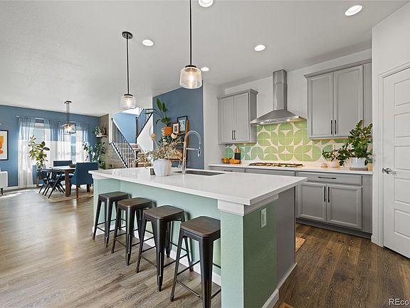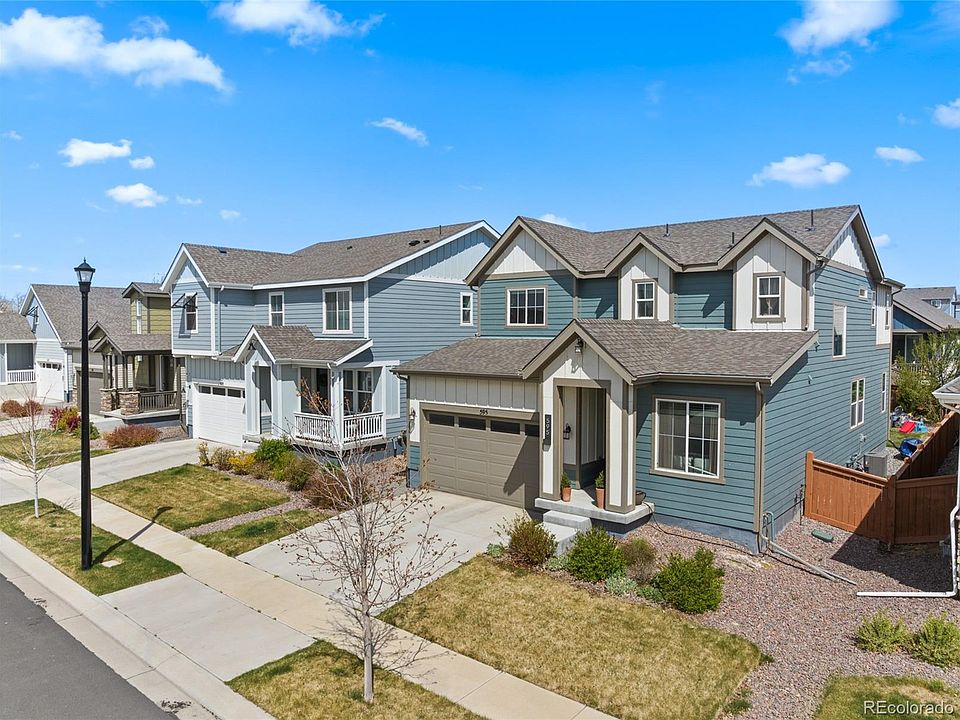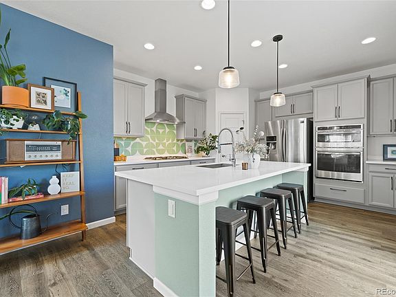 Welcome to 595 W 174th Place, a beautifully upgraded two-story home in the sought-after Hearthstone community of Broomfield, CO. Built in 2018 by Taylor Morrison, this 4-bedroom, 3-bathroom residence offers 2,252 square feet of thoughtfully designed living space, perfect for modern lifestyles. The heart of the home is the expansive kitchen, featuring upgraded countertops, stainless steel appliances, a gas range with a stainless steel hood, 42" cabinets, a walk-in pantry, and a spacious island with pendant lighting. The open floor plan seamlessly connects the kitchen to the dining area and family room, creating an ideal space for entertaining. A main-floor bedroom and full bathroom provide convenience for guests or can serve as a home office. Upstairs, the oversized primary suite boasts a walk-in closet and a luxurious bathroom with dual sinks, an oversized shower, and a sliding barn door entry. Two additional bedrooms, a full bathroom with dual sinks, a versatile loft area, and a laundry room complete the upper level. Step outside to the 18' x 15' patio, perfect for summer barbecues, and enjoy the landscaped backyard with planter boxes and a sprinkler system. Additional features include central A/C, a 2-car garage with bike racks, a custom built-in mudroom organizer, and a garage keypad entry. Located on a quiet street near parks and walking/bike paths, this home offers easy access to Boulder, Denver, and DIA, as well as nearby shopping and dining options. Hearthstone HOA also provides the community with amazing opportunities to come together, including Food Trucks Bi-Weekly during the summer months and Pancake Breakfasts for everyone to enjoy. Don't miss the opportunity to own this stunning home in a prime location!