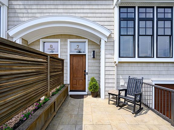 Explore this rarely available END-UNIT in highly sought after Jefferson Square, reminiscent of a classic Boston Brownstone with its unique South Shore character. The inviting courtyard styled entryway, with its well-designed privacy dividers and graceful arches, sets the tone for the home's interior. Step inside to appreciate the high 9’ ceilings, detailed millwork, and a versatile 3-sided gas fireplace. Natural light fills the main level living space from floor-to-ceiling windows, highlighting features such as waterfall styled quartz countertops, hardwood flooring, while the second floor offers dual ensuites, with walk-in closets. Maintained with much care and pride of ownership by its original owners, the property is in impeccable condition, with generator hook up & exceptional privacy. Located near essential amenities, popular shopping areas, town center, and with the convenience of Rt. 3 for easy commutes to Boston or the Cape. Welcome Home. Welcome to Pembroke!