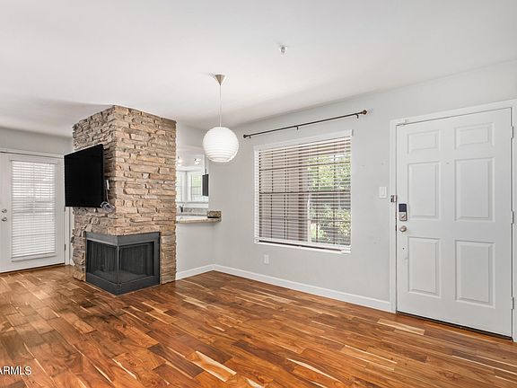 Check out this move in ready home! Inside is an inviting living area with engineered hardwood flooring and lots of natural lighting. The living area has a wood burning fireplace and stunning stone accent wall. The kitchen features granite countertops, black appliances, slow close cabinets, and lots of storage space. There are two master bedrooms-one with a walk-in closet and one with a large attached bathroom with spacious vanity and separate shower and toilet area. A spacious laundry area and linen closet provide additional storage space. This home is located in a wonderful gated community with TWO pools, a tennis court, clubhouse, and gym. Close to the Green Belt in Scottsdale, Canal Path, many parks, and TONS of shopping and dining. This home is also near AZ-101 for easy commuting! This home also includes a patio area and is located within a wonderful gated community with 2 gorgeous pools, a tennis court, clubhouse and more. In close proximity to the home as well is the Green Belt in Scottsdale, Canal Path, many parks, and lots of shopping and dining. This home is also conveniently located near the AZ-101 for easy commuting.