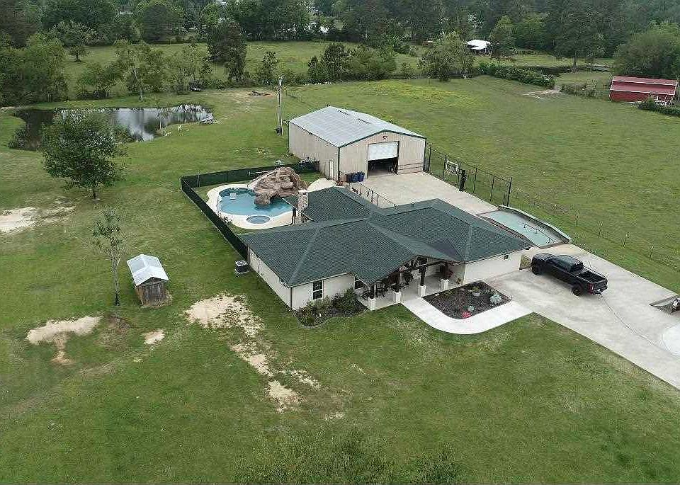 NO FLOODING!!! Check out this beauty, it has something for EVERYONE!!! 2.1 Acres, North Vidor, 4 beds 3 full baths split floorplan in main house with open concept, kitchen with farmhouse sink, stainless appliances, trendy quartz, butler pantry and a pot filler over stove. Step out back to covered patio with woodburning fireplace overlooking brand new pool with beach entrance and rock waterfall/slide and hot tub that is all less than a year old! 2000 sq ft detached shop with work area, upstairs loft, and full apartment downstairs. Don't miss the pond, it's stocked with blue gill perch and bass! Extra info: HVAC and ductwork replaced 2016, current 2021 survey flood zone C, 2019 installed new aerated system. **APPT ONLY, MUST BE PREAPPROVED or show Proof of Funds**
