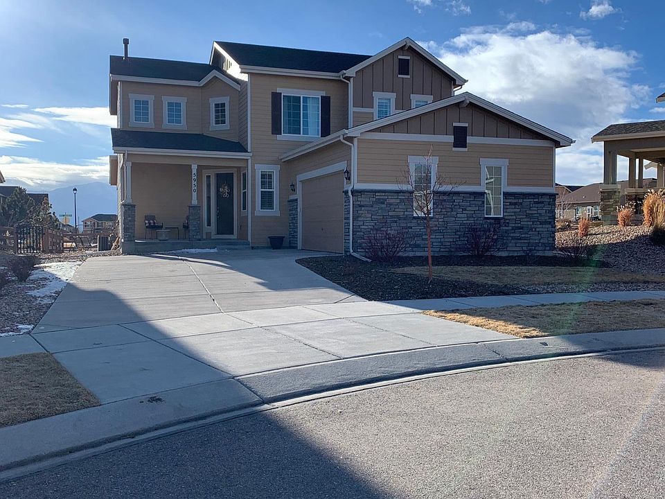 Beautiful 2-story home with Pikes Peak views in a highly sought after NE Colorado Springs community; Wolf Ranch. Available June, 2021. Featuring award winning D20 schools, easy access to I-25 and all the newest and best shopping/dining in COS, with an easy commute to USAFA or Peterson/Schriever AFB, downtown and all other local military institutions. Walking distance to Elementary School. Less than a half-mile to various neighborhood parks. This portion of Wolf Ranch is completely built out, so no construction traffic or noise. Location is fantastic! Home has four bedrooms upstairs featuring large master suite with views of Pikes Peak and a 5-piece bathroom, large walk-in closet, laundry on upper level. Main level has a gourmet kitchen featuring stainless appliances, double-wall ovens, gas stovetop, microwave and granite countertops with a large walk-in pantry. This open concept floor plan provides room to accommodate a large dining table that overlooks the family room on main level for open concept entertaining space. Family room has a gas fireplace and a sliding glass door to the backyard. Main level has a separate office/playroom area with double glass closing doors off the front door entry way. Half-bath completes the main level with a large mud room/cubby storage area as you walk in from the garage. Side car entry Garage is a three-bay garage which provides space for two cars and lots of extra storage space. The backyard provides a covered back patio that overlooks the beautiful Pikes Peak. A covered front porch patio overlooks the kid friendly cul-de-sac. Basement is unfinished which provides a great workout area, play area, and storage space. Home has Central Air Conditioning, ceiling fans in all bedrooms & family room, and hook ups for washer/dryer. Owner welcomes a long-term lease. No Pets. HOA included in rent. Tenant responsible for utilities. A security deposit/cleaning will be required which is equal to one month's rent. Any type of smoking or vaping is not allowed in the home or garage and the growth of marijuana is strictly prohibited in or on the premises. $30 Application fee per adult/family. A family narrative and zoom interview will be required. Must have 690 or higher credit score. Email for more information or to schedule a video tour.