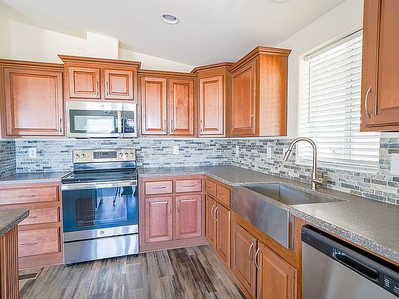 Brand New Cavco home with full factory warranties! Located near the clubhouse and pool, this home is loaded with thousands in upgrades. Home Features You’ll Love: - Upgraded Solid Surface Kitchen Countertops and a stunning farmhouse sink - Stainless Steel Appliance Package: 23 cu. ft. side-by-side refrigerator with water and ice dispenser, smooth-top electric range, dishwasher, microwave, and disposal - Energy-Efficient Construction – 2x6 exterior walls with R19 wall and R40 roof insulation for year-round comfort and lower utility bills - Central Air Conditioning and Heat – Enjoy reliable, all-electric climate control - Ground Set on Block Foundation with Carport – Offers durability and a clean look Located just minutes from historic Downtown Glendale and surrounded by beautiful parks, Villa Vaquero offers a peaceful, family-friendly environment with easy access to medical centers and schools. Community Amenities: - Heated Pool & Sundeck - Clubhouse & Rec Hall with Full Kitchen - Pet-Friendly Grounds - Lush Landscaping - Free Wi-Fi in the Clubhouse - Professional On-Site Staff & On-Call Maintenance Service