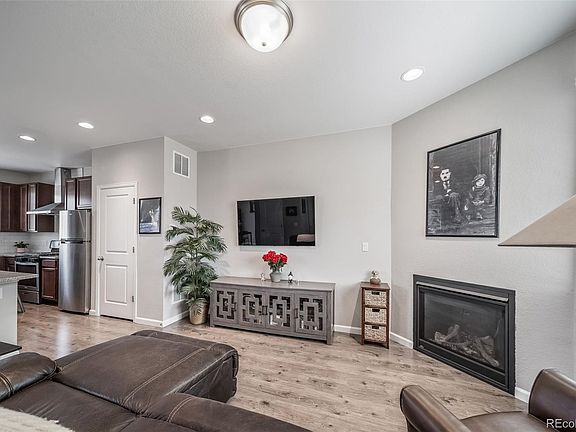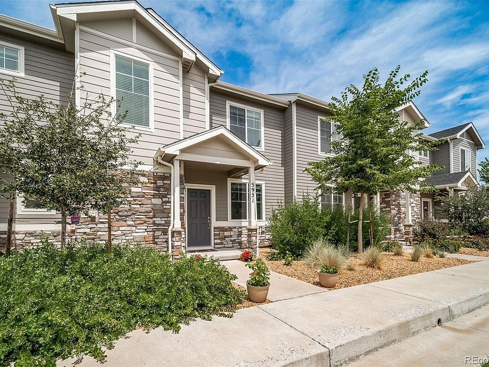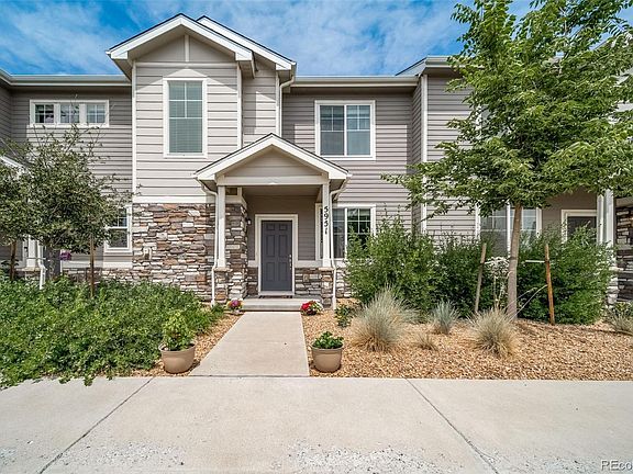 Surrounded by nature and trails, the Enclave Townhomes in Founders Village are a peaceful retreat you’ll love coming home to. This spacious two-bedroom townhome features an oversized attached two-car garage and plenty of storage throughout. Step inside to an open floor plan flooded with natural light. The living room is anchored by a cozy gas fireplace, perfect for Colorado evenings. The kitchen is a showstopper with rich saddle maple cabinetry, granite countertops, stainless steel appliances—including a gas cooktop, built-in microwave, and dishwasher—and a subway tile backsplash that continues behind the striking vent hood. Elegant wood flooring runs throughout the main level, tying the space together beautifully. Patio doors off the dining area lead to your private balcony—ideal for morning coffee or unwinding after a long day. Upstairs, you’ll find two spacious bedrooms, each with its own en suite bath. The primary suite boasts a huge walk-in closet and a luxe bath with double sinks, quartz countertops, tile flooring, and a large shower with full-height wall tile. The secondary bedroom also features a private bath with a tub/shower combo, quartz countertops, and bright white tile that reaches to the ceiling. An upper-level laundry room adds convenience, and the full-size washer and dryer are included. Enjoy the community's abundant amenities—neighborhood parks and playgrounds, a pool at the Ridgehouse, and direct access to the Mitchell Creek Canyon Trail right outside your door. Don’t miss the opportunity to make this stunning townhome yours!