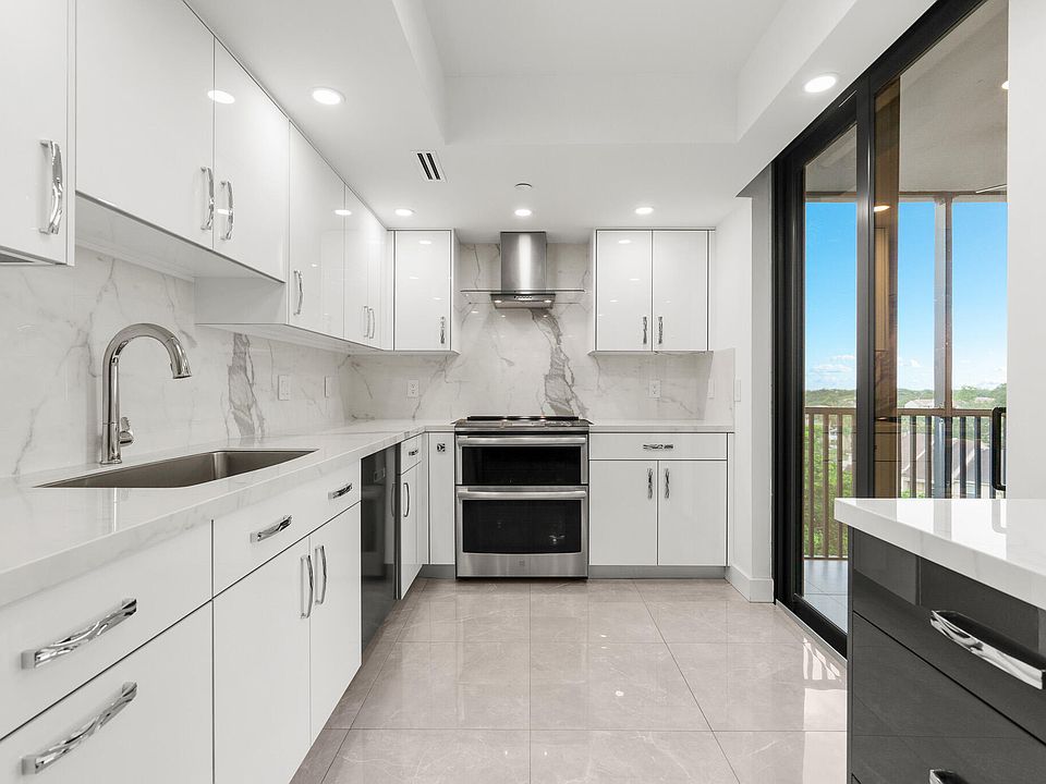 Stunning completely updated executive corner PENTHOUSE condo with dual balconies and incredible views of Boca from the 7th floor! This spacious top floor home features floor to ceiling hurricane impact windows, open floor plan, split bedrooms, modern white finishes, large open kitchen with built-in full size front loading washer and dryer, two tone cabinetry, automatic room darkening shades, beautiful porcelain square tile flooring and a generous primary suite. Primary bathroom has sparkling white textured tile, built in shower bench, heated towel rack and a large walk-in closet. An abundance of storage including a separate building storage unit on 1st floor. All electric updated w/ LED dimmable lights. Home includes a beautiful framed white Samsung flatscreen TV. Showings start Sat 7/8.