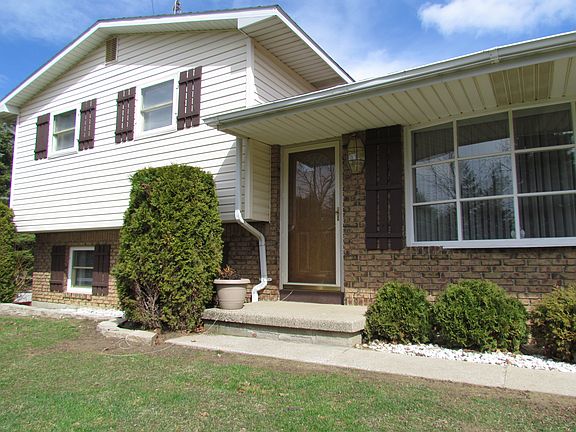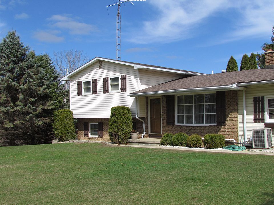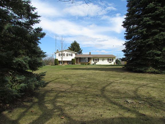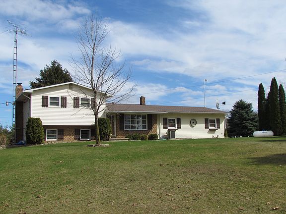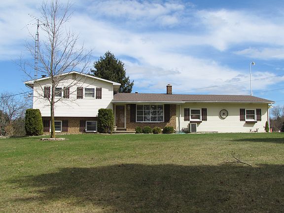 Country charm! Enjoy a cup of coffee sitting on the freshly painted deck, overlooking majestic trees and a private pond. Well-maintained, manicured yard. Bright, modern kitchen has been updated with new counter tops, new stainless steel appliances, light fixture and painted cabinets. Large sunroom with gorgeous, exterior views from windows all around. Extra storage can be found under sunroom to hold lawn equipment and outdoor furniture. New ceiling fans installed in freshly painted bedrooms. Natural, wood stove in family room. New, high efficiency furnace and new a/c unit. Water filtration system. Shed on property included for additional storage. Home includes paddle boat, air pump to circulate pond, wood cutter, wood-burner, gas heater, stereo surround sound, stereo cabinet, garage refrigerator, gas dryer, parts to well, hot tub, and new appliances in kitchen. Washer not included. Measurements are estimates, Buyer/Buyer Agent to verify.