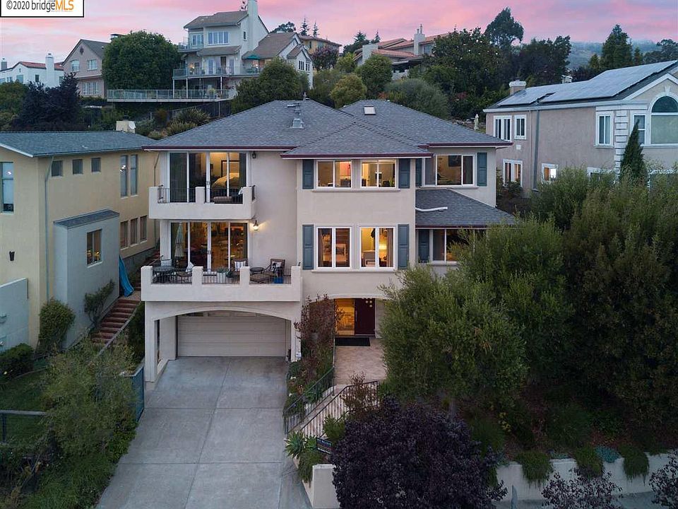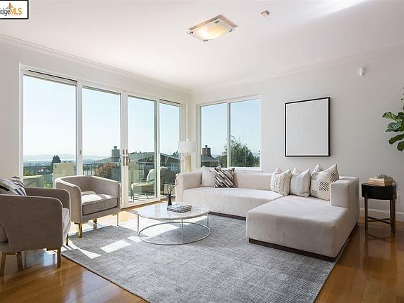 Located in desirable Upper Rockridge, this stylish 5+ bedroom, 4 bath home is sure to captivate with its sophisticated style. Panoramic Views of San Francisco, the Golden Gate Bridge and beyond set the backdrop to this contemporary. Enter through impressive double doors to high ceilings, stone flooring and a convenient guest suite with full bath. Upstairs, the main living level features open spaces, panoramic views, natural light and rich hardwood flooring. The recently remodeled chefs kitchen leaves nothing to be desired and opens to the spacious family room. With access to the large back yard with multi-level garden, play and seating area on one side or the front balconies with panoramic views on the other, this home was built with indoor/outdoor entertaining in mind. The open floor plan features living, dining and family room accented by a warm firepace in the center. Upstairs, an office and 3 bedrooms include the primary suite with walk-in closets, fireplace and enticing views.