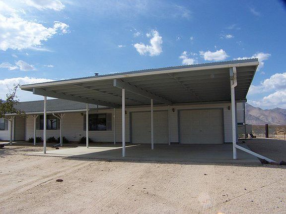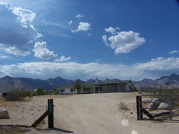 COMPLETE WITH STUNNING SOUTHERN SIERRA VIEW!! All north facing windows feature Owens Peak and friends! Solid 2x6 construction on 2.5 acres. New carpet and flooring just installed! Interior freshly painted! Walk into a living room and a handsome rock fireplace w/ wood stove insert designed to heat the home. Open kitchen hosts abundant storage, food pantry, appliances, and a breakfast bar under recessed lighting. Master bedroom is large enough for a king or queen, and more! Walk-in closet and dual sinks in master bathroom. Dual pane windows w/ oak window sills throughout. Oversized 2-car garage w/ evaporate cooler, workbench, and connecting 2-car carport. Two sheds in the rear w/ attached covered open storage area. Over 50 trees all on automatic bubbler sprinklers. Ranch fencing all around w/ added chain link for backyard. On a recently renovated 4-party well. Adjoining southern 2.5 acre parcel is also yours with a full price offer!! ONCE YOU SEE IT--IT'S REALLY SOMETHING!!