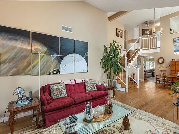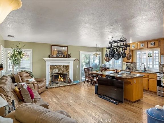 Wonderfully maintained and beautifully upgraded best describes this Muirfield home. This 1837 square foot home is situated on a corner lot and features a formal living and dining room, spacious kitchen with stainless steel appliances, granite counter tops, and an island that overlooks the family room with a gorgeous fireplace as the focal point. Stunning hickory wood flooring can be found on the first floor and new windows and new carpets on the second floor. Master bedroom, master bathroom and walkin closet are located on the first floor. Sliding doors in the family room and master bedroom feature built-in privacy blinds Impressive amenities include shutters through-out the home. As you step into the master bedroom you quickly notice the remodeled luxuriously appointed dressing area lined with new cabinets, skylight, walk-in closet, granite counter tops and a dazzling shower. The 2 guest bathrooms on the second floor have both been remodeled and feature a wonderful tile shower and striking vanities. You will find the inviting upstairs bedroom with a walk-in closet and guest bathroom just across the hallway, pleasingly private. One of the best perks of the Muirfield floorplan is the the spacious open loft area also located upstairs that can be used as a home office, den, gym or made into a third bedroom. The inviting backyard features an aluma-wood patio cover for easy maintenance.