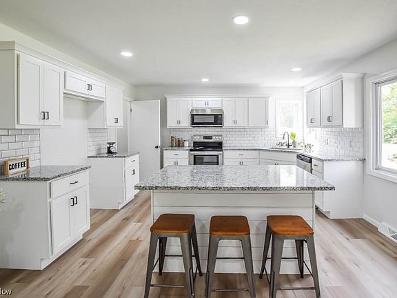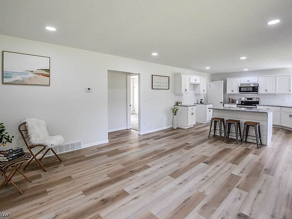 Absolutely incredible fully remodeled ranch situated on nearly an acre! Thoughtfully updated with a brand new roof, siding, gutters, furnace, A/C, garage doors and openers, sump with battery backup and more. The fresh and modern interior features luxury vinyl plank flooring that seamlessly connects the living room to the stunning eat-in kitchen complete with crisp white cabinetry, subway tile backsplash, granite countertops and a center island with counter seating. Down the hall you'll find three newly carpeted bedrooms and two refreshed full baths. The master suite includes a walk-in closet and a private full bath neatly concealed behind a sliding barn door. The lower level adds even more living space with a spacious rec room with an open joist ceiling. Car enthusiasts will appreciate the added bonus of a two car attached garage with a covered porch plus a 22' x 30' three car detached garage with a metal roof. Other noteworthy improvements include the well holding tank and pump, concrete pad, septic aerator and exterior doors. Move in ready and minutes away from Berlin Lake where you can enjoy fishing, swimming and boating on Ohio's 5th largest inland lake!