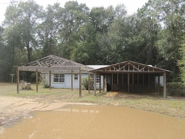 Exterior Features:Single story home, curb appeal is poor, it appears to have 2 partially built covered garages on the front of the home. Not Complete. Yard will need lots of work, in a low lying area. Roof and siding will need some repair. Home will need work to make the home liveable.Interior Features:Home interior will need some work, flooring and carpets will need work, or replacement. Walls are in fair condition, bathrooms look complete, kitchen includes cabinets, counter tops and sink. Bedrooms include closet space. No mechanics were found.