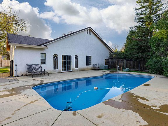 Stunning 3/2 with an INGROUND POOL in the desirable Blossom Park neighborhood. This well appointed home boasts custom finishes throughout with soaring ceilings, crown molding, formal dining room and spacious common areas. The open kitchen features ss appliances, extensive cabinetry with abundant storage, tile counters, breakfast bar and a beautiful breakfast nook surrounded by large view windows. Spacious primary bedroom has an ensuite bath with, walk in closet and double sliding door out to the fully fenced, sparkling pool. Gated RV parking, covered back patio and quiet cul de sac location.
