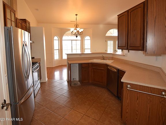 Grab your favorite beverage and watch the spectacular sunset over Granite Mountain. This home is situated on the hilltop of a fenced, two-acre, quiet lot in Williamson Valley. The spacious, open floor plan has been updated with engineered hardwood flooring with no room-to-room transitions. Twenty solar panels and associated control system is NOT leased, but owned, providing up to 5KW (AC) of power generation, which translates to an average of 10 Megawatt-hours per year. The private well provides fresh domestic water, while multiple water tanks collect rainwater for your irrigation needs. GATE SWINGS OUT.