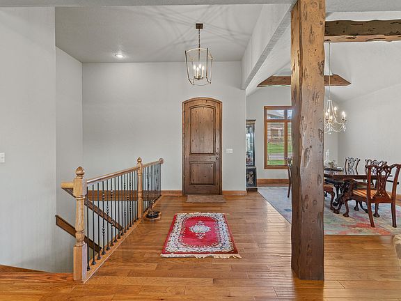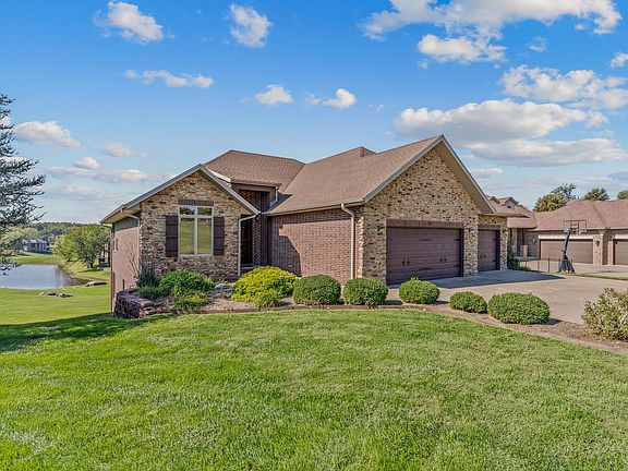 Wow what a home! Wow what a view! Enjoy the brick and stone home with a very open floor plan including the kitchen, great room and formal dining. The kitchen includes granite countertops with a center island snack bar and farm sink. The beautiful cabinetry includes pull out shelves and a stainless gas cooktop, microwave and oven. The backsplash is travertine and the cooktop enclosure is beautifully enhanced to match the gorgeous fireplace enclosure. A raised ceiling, beams and very large windows add to the beauty of this open area with wood flooring. The spacious master suite is complete and also has wood flooring and a spa like bath with dual vanities and sinks, make-up vanity, center tub, a large tiled walk-in shower and equally large walk-in closet. Downstairs enjoy a very spacious family room with a raised ceiling travertine enhanced fireplace, a wet bar with granite countertops, a center island and beautiful cabinetry. Three additional bedrooms with walk-in closets and lots of storage complete the lower level. Enjoy the outdoor living from an upper-level screened-in deck and lower-level patio. The large backyard joins the common area that joins the community lake for lovely views in all seasons. The 3-car garage is oversized. Many updates include new carpet in bedrooms, new wood on stairs, new stove top fan in the kitchen hood, most light fixtures upstairs, most new faucets in 2022, new Kohler farmhouse sink and fresh paint upstairs. Many upgrades and amenities are found in this builder's home!