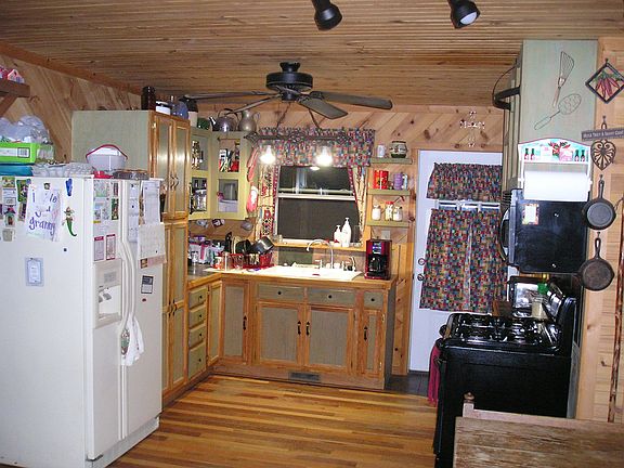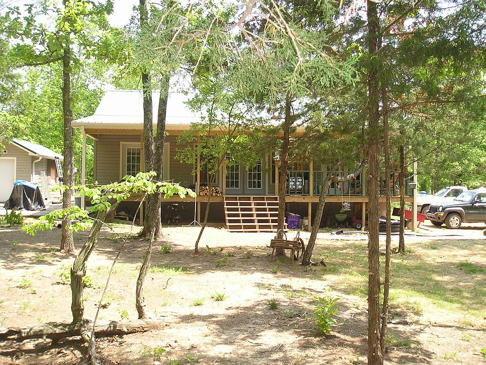 No. 01668 For Sale Enjoy privacy and country living in Mountain View, Arkansas. Meander along a scenic driveway to reach this 2 bedroom, 2 bath home situated on 12.2 acres. Most of this acreage is wooded, which allows for great hunting opportunities and a quiet space to relax. The 1280 square foot house has vinyl siding, a metal roof, and a 6 by 8 underground safe room that you can enter from inside. From the covered front porch, french doors lead into the living room, which is open to the kitchen.