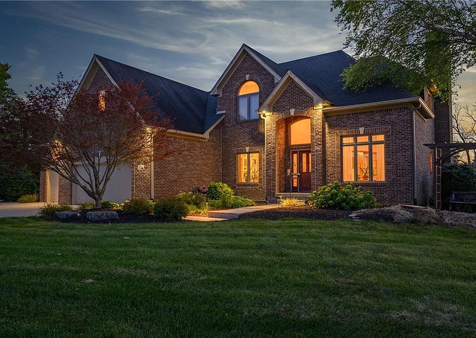 This exceptional, 4 bedroom, Mystic Lake, all brick home has it all! You'll love the sunsets and sunrises as you enjoy your 8-acre stocked, spring-fed lake, large in-ground pool, outdoor gazebo, and fire pit. Indoors you'll be greeted with a 2 story entry with white oak floors and double stairway. The custom kitchen boasts quartz counter tops, induction cooktop, center isle, hardwood floors and pantry. Master retreat is a true oasis with spa-like bathroom including free standing tub, beautiful ceramic and porcelain tiles and huge walk in closet. Finished basement includes huge family room, kitchenette and 2 additional rooms with storage.