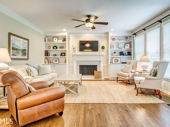 - Interior: Ceilings 9 Ft Plus, Double Vanity, Pulldown Attic Stairs, Separate Shower, Bookcases, Ceilings - Trey, Carpet, Foyer - 2 Story
