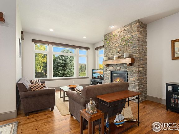 Welcome to this Pristine Lock & Leave Patio Home that backs to Open Space in the highly sought after Reserve at Fossil Lake Ranch neighborhood. Sunlight streams through the large windows, highlighting the elegant wood flooring that flows throughout the main level, complemented by natural wood details inside and out that set this home apart from the rest. The kitchen is a culinary enthusiast's dream, boasting stainless steel appliances, a spacious island, and a walk-in pantry. Unwind in the inviting living room, which features a stunning gas fireplace set against a floor-to-ceiling stone wall. The open floor plan maximizes functionality, while high ceilings enhance the sense of space and comfort. Step outside to the back patio, where large timber beams create an inviting atmosphere for enjoying the fresh Colorado air, surrounded by mature landscaping that ensures privacy. Additionally, the basement offers plenty of storage space to meet all your needs. With its thoughtful design and prime location, this patio home is perfect for those seeking a low-maintenance lifestyle without sacrificing elegance and comfort. Don't miss the chance to make this exceptional property your own!