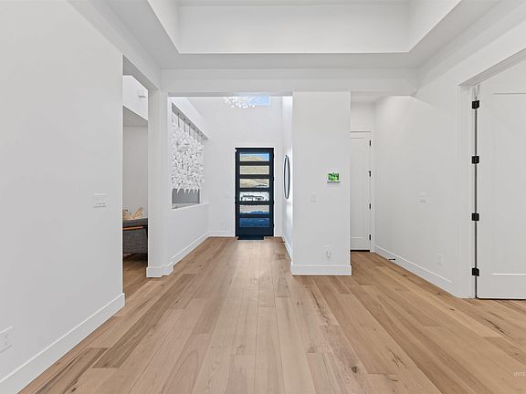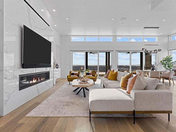 Truly Custom Boise Foothills Modern! Premier lot w/ views of valley & the Boise River. World-class finishes, amenities & Smart Home Tech. Single-level w/ imported chandeliers, hardwood floors, designer tile & walls of low UV windows. Jaw-dropping chef’s kitchen w/ Wolf, Sub-Zero, Miele appliances; 3 ovens, 8 burners, 1 griddle, 3 refrigerators, 2 drawer microwaves, 2 dishwashers plus high-end Italian panel cabinets. Spacious butler’s pantry w/ separate food storage pantry. Great Room w/ 13’ ceilings plus glass enclosed Beverage/Wine Center featuring Miele built-in coffee machine, clear ice maker & 100 bottle built-in wine tower. Owner's Suite dazzles w/ walls of glass overlooking city lights. Spa-like primary bath w/ floating Euro-style vanities, freestanding tub, glass enclosed rain shower & walk-in closet by Inspired Closets. Includes 5 ensuites, multi-slide doors, inviting covered patio w/ sunsets. Enjoy trails, Boise River & restaurants. Approved for construction of inground pool. “Must See” home!