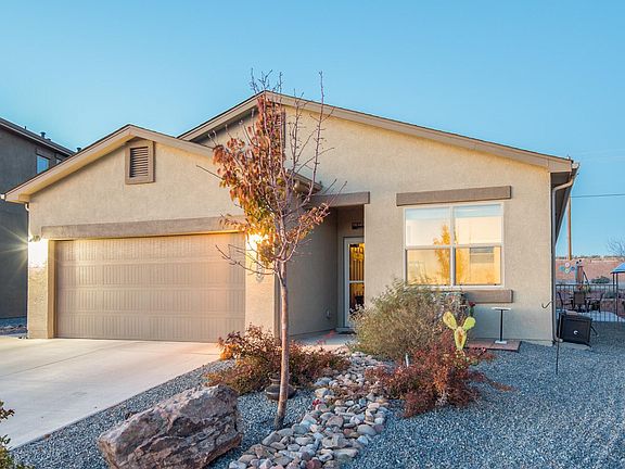 Welcome to this treasure in Rio Rancho. This DR Horton Home guides you to an open living space filled with natural light. This spacious area flows easily to the kitchen and dining space. The open kitchen features a walk-in pantry with all appliances included. Generous dining area allows for comfortable entertaining. Primary bedroom includes, extra large shower and roomy walk-in closet. 4th bedroom could easily be used as home office or study. Beautifully landscaped backyard is perfect for entertaining or stargazing. Hot tub and storage shed are included!