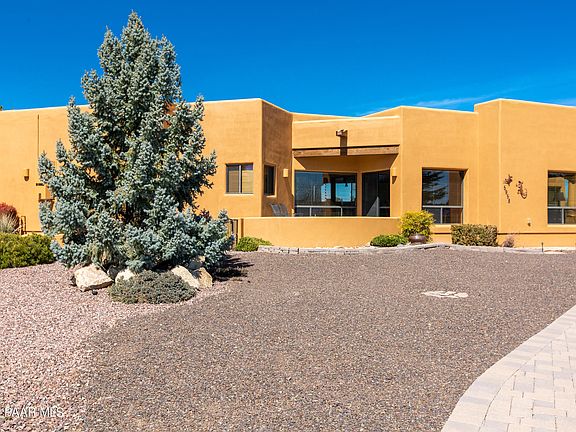 A Prescott Paradise! Welcome to 5958 Allspice Way; a Custom Nanke Construction Santa Fe style property in the Pinon Oaks neighborhood. Elevated on an incredible Granite Mountain view lot, this extensively updated 1948 sqft 2 bedroom and a den 2 bathroom home offers all the custom finishes you could ever dream of! Gorgeous solid wood cabinets, tile counters and new JennAir and LG appliances make the kitchen a chef's delight. Relax in the spacious den or in the natural light of the open living room with a cozy gas fireplace, stunning southwestern pillars and brushed concrete flooring. Enjoy the sunsets from your covered patio - the perfect place to dine al fresco and take in the breathtaking views. Tesla Solar Powered! Contact us today to view this must-see property!