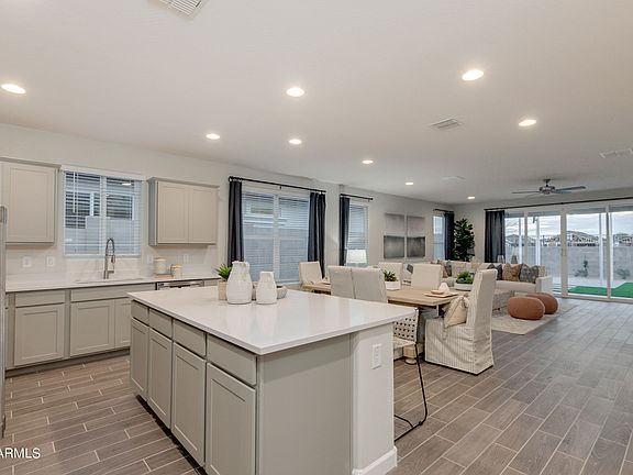 CLOSE IN JUNE! Nestled within a picturesque community, this exquisite home offers a harmonious blend of elegance and convenience. Boasting a spacious 3-bedroom, 2.5-bathroom floorplan with a 3-car tandem garage, this open concept great room is tailor-made for hosting memorable gatherings! Rich brown cabinets throughout - GOURMET KITCHEN feat. full tile backsplash, UNDER CABINET LIGHTING, GAS COOKTOP, STAINLESS STEEL RANGE HOOD, QUARTZ countertops. Wood-like tile throughout the home, TANKLESS WATER HEATER, garage prewired for EV CHARGER, SMART HOME, BLINDS INCLUDED! Additionally, anticipate the upcoming amenities, including a community pool and fitness center, promising a lifestyle of leisure and wellness all within walking distance to City North & Desert Ridge Marketplace.