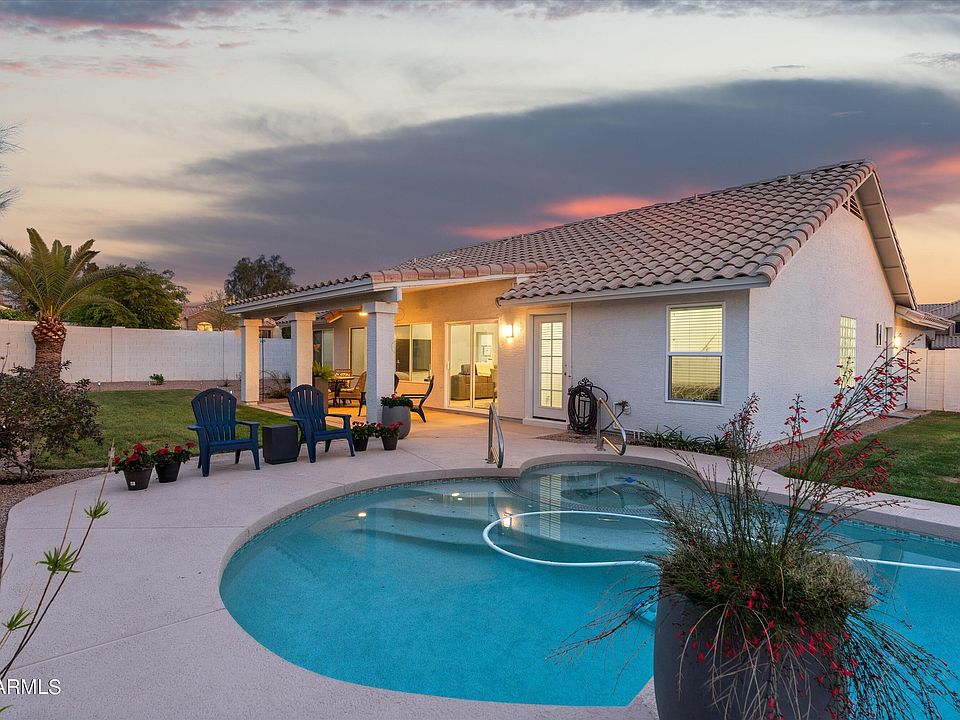 Welcome to this stunning residence nestled in the heart of Red Mountain Ranch, a premier Mesa, Arizona community known for its breathtaking views and luxurious lifestyle. Having received over $140,000 in upgrades, this home is the epitome of sophistication and comfort, designed to cater to the most discerning tastes. Upon entering, you'll be greeted by a spacious and inviting layout that seamlessly blends modern elegance with functionality. Every corner of this home has been thoughtfully updated to enhance its beauty and livability, from the sleek, contemporary kitchen equipped with top-of-the-line appliances and finishes, to the luxurious bathrooms that promise a spa-like experience every day. The heart of this home is undoubtedly its magnificent outdoor oasis. Set on a large, private lot at the end of a serene cul-de-sac, the backyard is a haven for relaxation and entertainment. Dive into the crystal-clear waters of your own private pool or unwind in the spa under the stars - your personal retreat awaits. The expansive patio and beautifully landscaped grounds offer the perfect backdrop for gatherings, celebrations, or quiet evenings soaking up the Arizona sunsets.