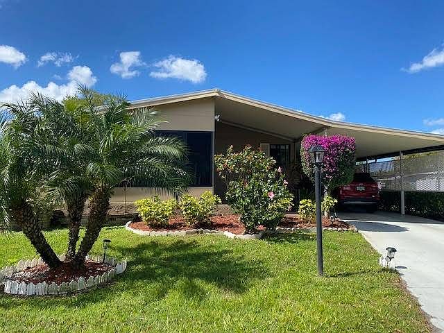 MOTIVATED SELLER! This gorgeous and well-maintained home can soon be your paradise. It is located in Sarasota, FL on the West Coast, a short drive to all the beaches, dining, and shopping. The home sits at the end of a cul de sac in a quiet neighborhood. It is a recently renovated 2 BR 2 BA home with cathedral ceilings and new high-quality laminate flooring. It has a new roof, a new hot water heater, and updated appliances. The curb appeal is breathtaking with tropical landscaping that can be enjoyed from the lanai located at the front of the home. The kitchen has updated cabinets, granite-look laminate countertops, nice (almost new) appliances, and new disposal. The living area is open concept to the dining area and has an overhead ceiling fan. There are sliding doors from the living area to the lanai. The master bedroom has plenty of room for a king-sized bed and bureaus, a large closet and walk-in closet, along with an en suite bath. The guest bedroom is nicely sized with a ceiling fan and a full bath across the hall. There is an attached utility shed off the carport with a washer/dryer and workbench, along with plenty of room to store your garden tools and beach toys. The extra-long driveway will easily accommodate two cars. ***Lot rent is $1074. This home is located in the 55+ community of Camelot Lakes Village which offers the best of the Florida lifestyle. This gated community boasts two clubhouses, two resort-style pools, and many amenities. Everyday activities include a cardroom, billiards, library, tennis, shuffleboard, horseshoes, bingo, and arts/crafts. It is pet-friendly and the perfect fit for your ideal retirement or vacation home. All listing information is deemed reliable but not guaranteed and should be independently verified through personal inspection by appropriate professionals. Integrity Mobile Home Sales cannot guarantee or warrant the accuracy of this information, measurements, or condition of any property. Measurements are approximate. Lot rent is subject to change.
