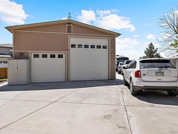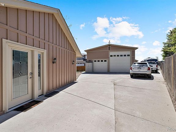 Located on one of the largest lots in the neighborhood, in a cul-de-sac, this former model home has it all! A long concrete driveway with custom iron gate leads to a 28x40 insulated outbuilding with 100 Amp service and concrete floor. The oversized driveway allows for several vehicles with plenty of room for RV's, boats, atvs, etc. As you enter the home, this open floor plan features a large kitchen with stainless steel appliances, granite counters, Alderwood soft close cabinetry with crown molding, and pullout drawers in the pantry. Entertaining is made easy in the spacious Great Room with new luxury vinyl plank flooring and a gas fireplace. The newly installed triple pane patio doors lead to a beautiful covered pergola with retractable shades and a custom built pine and brick outdoor entertainment center (tv included). The expansive private backyard offers new fencing with steel posts, a large fire-pit/above ground pool area, playground (wood swing set included) and plenty of storage with two large sheds. Plenty of Storage space in the loft of the outbuilding which also has a mechanical lift for loading. Save money on insurance with a newer high impact resistant roof and NO HOA! Located in the award winning Cherry School District this home is conveniently situated near all the amenities, RTD, restaurants and shopping with easy access to E-470. In close proximity to Pioneer Park, Trails and Lookout Pool. Welcome Home!!!