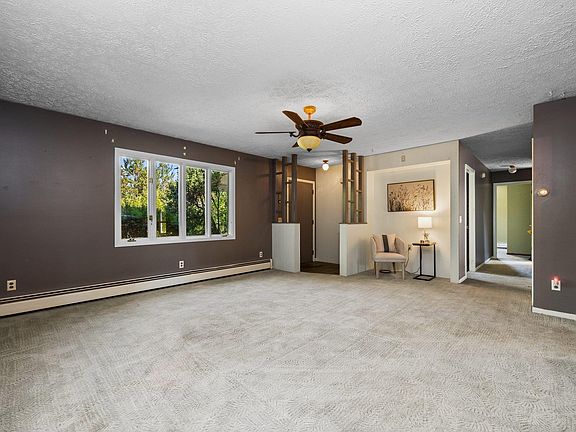 3 bedroom, 2 bathroom residence, ideally situated just five houses west of Silver Lake. This home enjoys a prime setting that blends the peacefulness of "out of town" living with convenient accessibility to local attractions, including the Crown Golf Course, Mulligans, and Boones Long Lake Inn. Perched atop a gentle rise, this home features a practical two-car drive-under garage and an additional shed for storage. The property is surrounded by lush trees and verdant greenery. You'll also appreciate the convenience of the recently paved driveway. Inside, the home offers a generously sized living room and a spacious eat in kitchen. This charming home showcases a vintage 70’s vibe. The main floor is bathed in natural light streaming through the windows. The lower level presents an opportunity for customization, allowing you to create the space that perfectly suits your needs. The backyard offers a peaceful space to enjoy your morning coffee, read a book, or host outdoor gatherings.