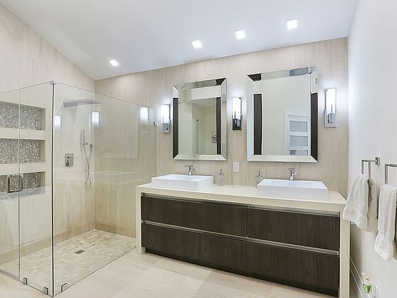 Beautiful Contemporary Home fully remodeled. Marble floors throughout. Impact windows and doors throughout. Custom marble master bath. His and her custom closets. 18’ high custom marble and glass accent walls. 2 electric built in fireplaces. 2 custom islands. 18’ high ceilings throughout. Travertine paver circular driveway and custom pool deck. Brand new salt water pool. Large u shaped quartz and marble bar/bbq area