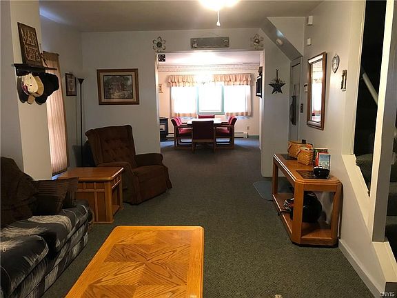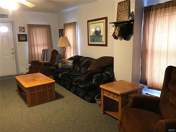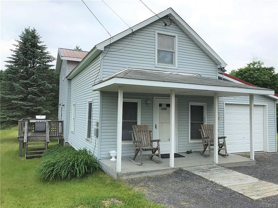 Tucked away at the end of the road, this property consists of two lots and borders the sugar river. Very private for a village property with lots of elbow room. the village park is across the street.