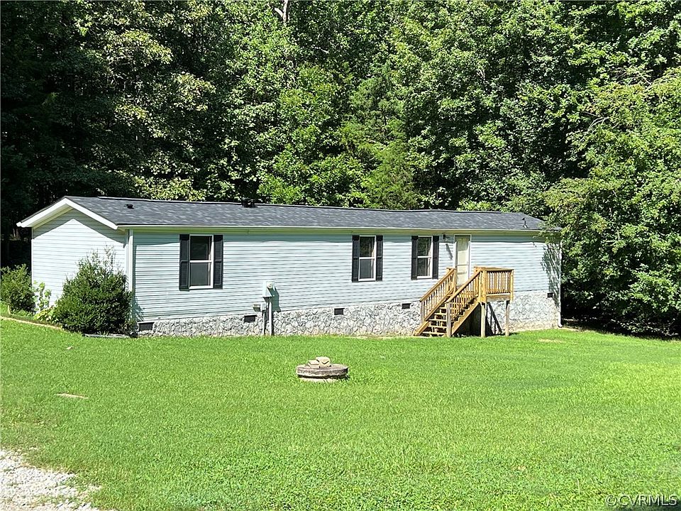 Great deal for simple country living. Located down a short, quiet, cul-de-sac road- this single wide home is ready for you. Just under an acre of land- some open yard around the house, and some wooded on the sides and back. 3 bedrooms, 2 full baths at a great price. This home is on permanent foundation piers and the title has been surrendered to convert it to real estate. Would be a great investment property. Property is being sold as-is. Shed does not convey.