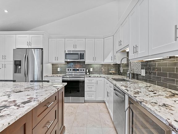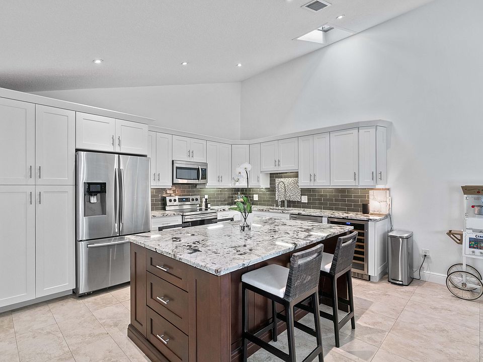 Don't miss this updated 3-bedroom townhouse with large open kitchen and family room. Kitchen has granite counter tops, crown molding, a built in wine fridge and more! Lots of natural light and access to outdoor patio through every room. Primary bathroom has handcrafted vanities, double sinks with granite counter tops & soft close drawers. 20' x 40' screened patio with mounted TV. Great end unit location with two designated parking spaces. HOA includes use of community clubhouse, 2 pools, tennis & basketball courts. Come see it today!